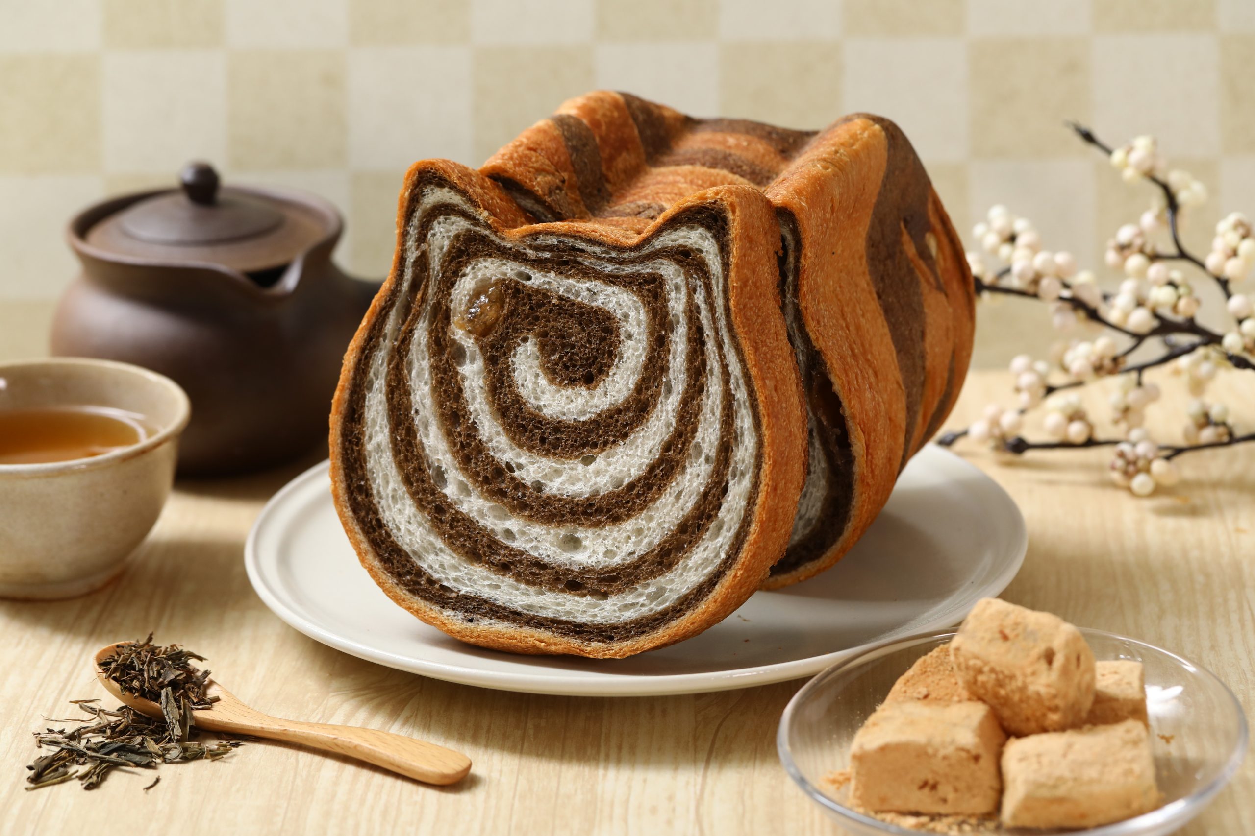 チョコを練り込んだチョコチップ入りの生地と、キャラメルパウダーを練り込んだ生地を重ね、キュートなゼブラ模様に焼き上げました🦓