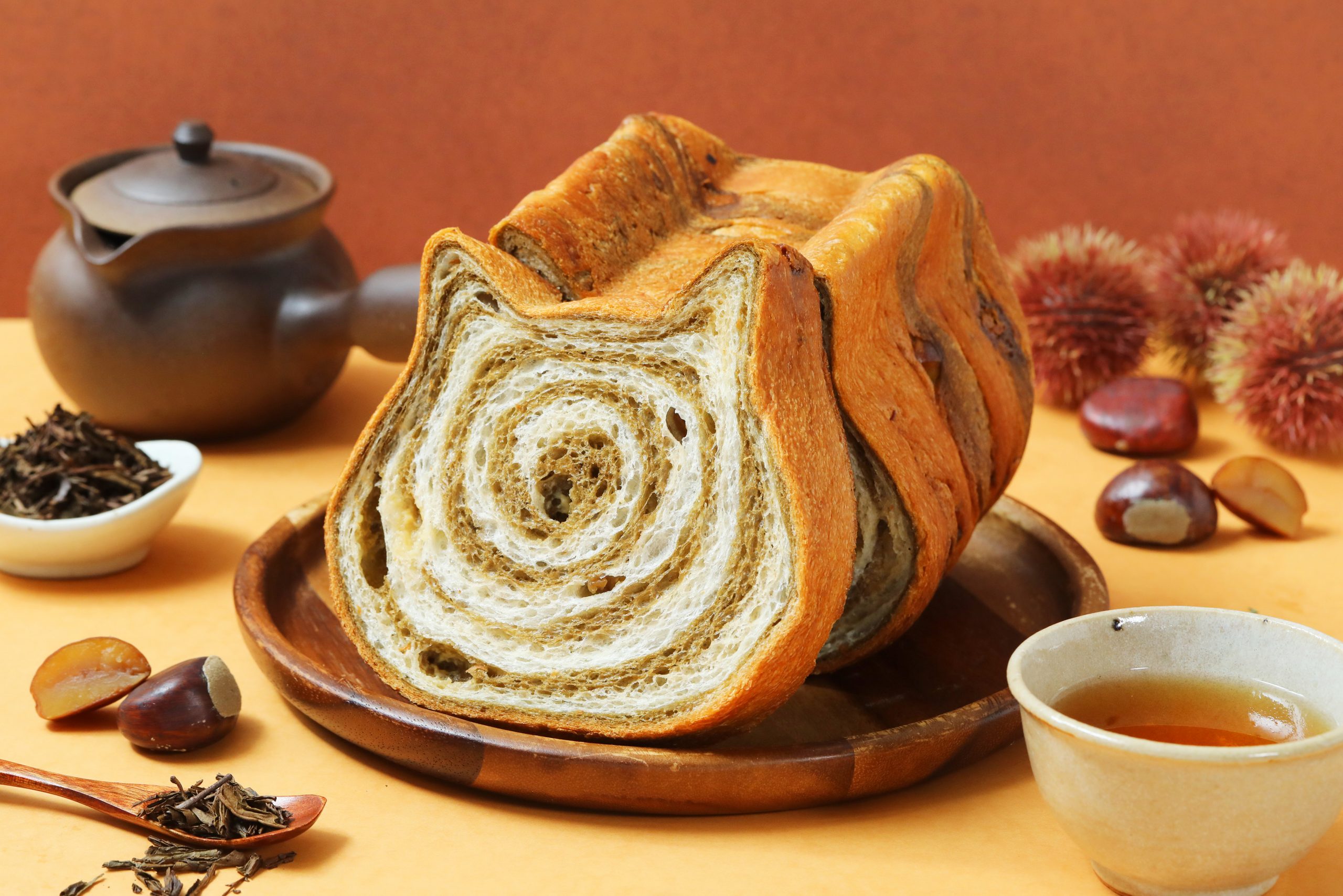 プレーン生地とマロン風味の生地に、ほうじ茶生地を加えて、3つの味わいを楽しめるねこねこ食パンに仕上げました🐈