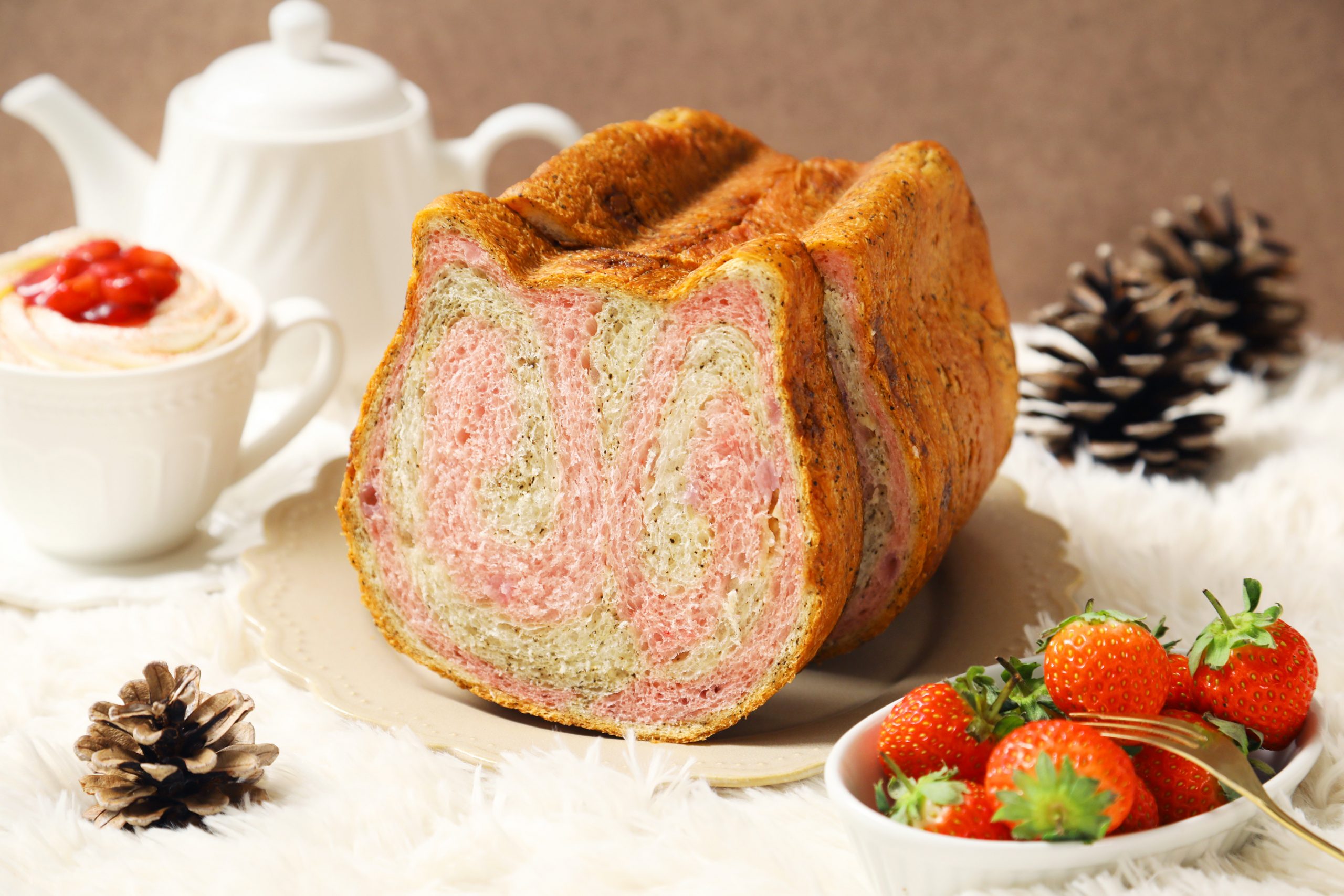 つぶジャムいちごを混ぜ込んだいちご風味の生地に、アールグレイの茶葉とホワイトチョコを練り込んだプレーン生地を合わせ、渦巻き模様に焼き上げました🍥