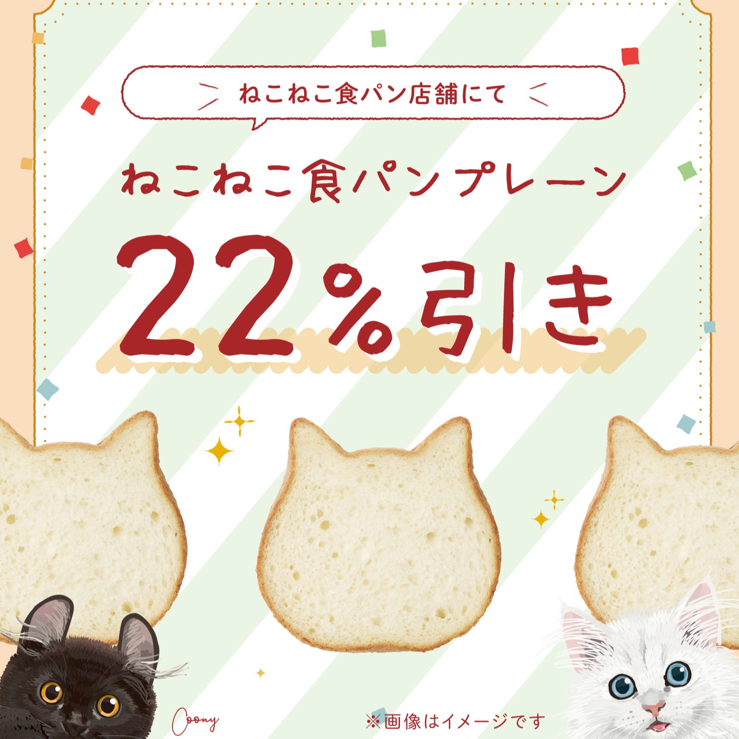 期間中、「ねこねこ食パン プレーン 」1本を22%引きでお買い求めいただけます🍞✨